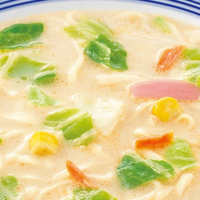 とんこつの風味が豊かに香るまろやかな口当たりのちゃんぽんスープです。野菜エキスを加えた液体スープを入れることにより、野菜の甘みや旨みが感じられる「リンガーハットの長崎ちゃんぽん」らしい味わいに仕上げました。