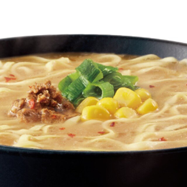 油揚げめん(小麦粉(国内製造)、植物油脂、食塩、しょうゆ、たん白加水分解物)、スープ(粉末みそ、みそ、砂糖、酒粕パウダー、豚脂、植物油脂、ポークエキス、食塩、おからパウダー、ポーク調味料、香辛料、酵母エキス、チキンエキス、ジンジャーペースト、全卵粉)、かやく(鶏・豚味付肉そぼろ、コーン、ねぎ、唐辛子)/加工でん粉、調味料(アミノ酸等)、炭酸Ca、増粘多糖類、香料、カラメル色素、酒精、かんすい、カロチノイド色素、微粒二酸化ケイ素、酸化防止剤(ビタミンE)、甘味料(スクラロース、アセスルファムK)、ビタミンB2、ビタミンB1、(一部に小麦・卵・乳成分・ごま・大豆・鶏肉・豚肉・ゼラチンを含む)
