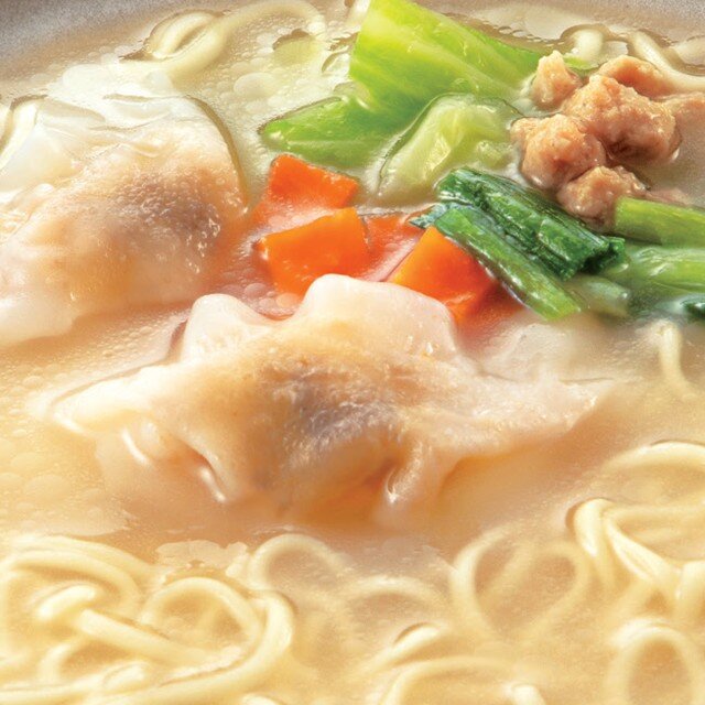 食べごたえのあるワンタン、シャキシャキとした食感の良いキャベツ、程良く味付けした鶏肉そぼろ、色調の良い人参、ニラを加えて仕上げました。