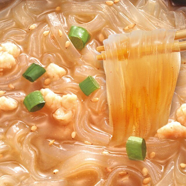 滑らかで、ぷりっとした食感の平めんタイプのはるさめです。スープとの相性の良さにこだわりました。