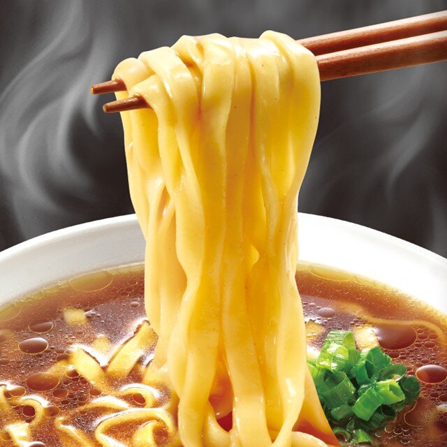 しっかりとした噛みごたえのある潤もち食感の太めんです。めんに適度な味付けを行い、スープと相性良く仕上げました。