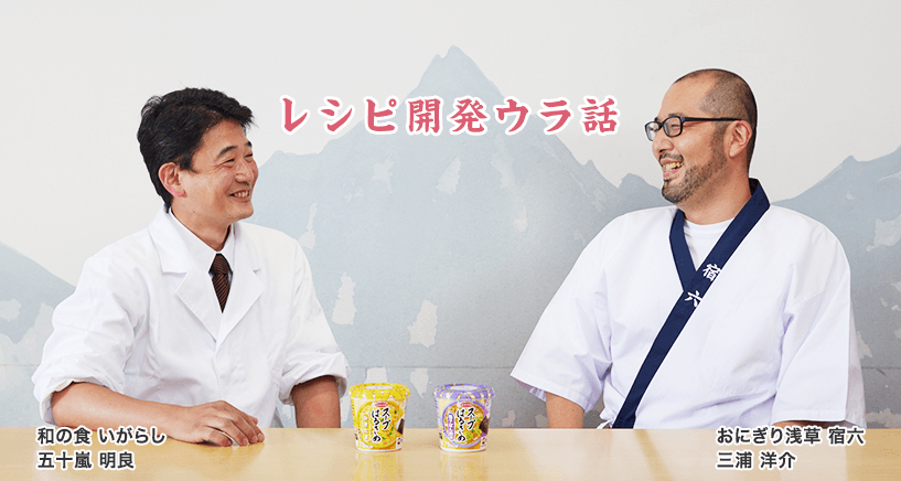 「おにぎり浅草 宿六」の三浦さんと一緒にスープはるさめ「かきたま」、そしてスープはるさめ「柚子ぽん酢味」にぴったりなレシピを開発したのは、「和の食 いがらし」の五十嵐さん。“真面目さ”をテーマとする同店、五十嵐さんの姿勢を取り入れようと三浦さんからコラボを打診。最終的には、三浦さんにも思いつかなかった、という新たなレシピが完成しました。特徴のあるスープを「調味料として考えた」と話すお二人に、その裏側を聞きます。