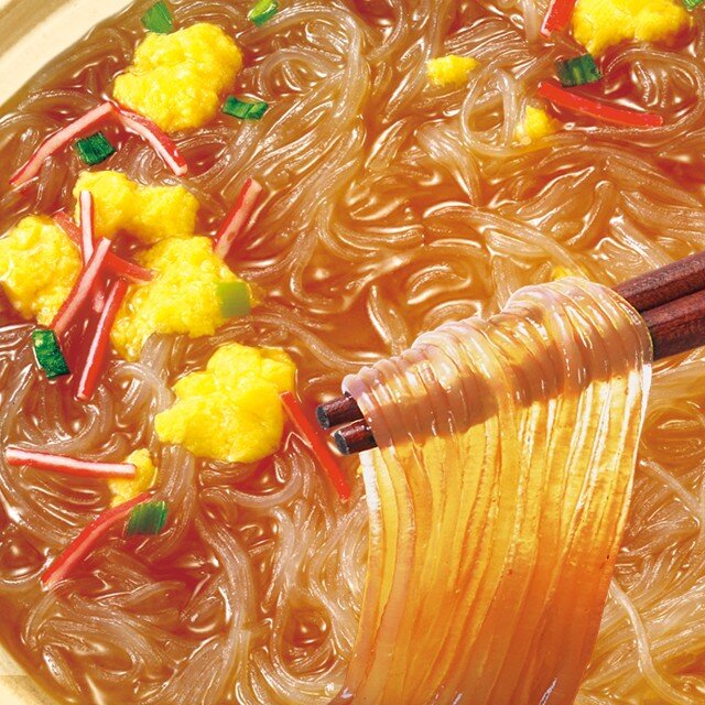 滑らかで、ちゅるんとした食感の春雨です。スープとの相性の良さにこだわりました。