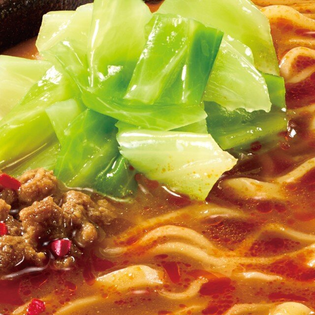 ポークをベースに香味野菜の旨みを加えた味噌スープです。別添の液体スープによって辛みと、甘いオニオンの風味が加わり、食欲をそそる味わいに仕上げました。