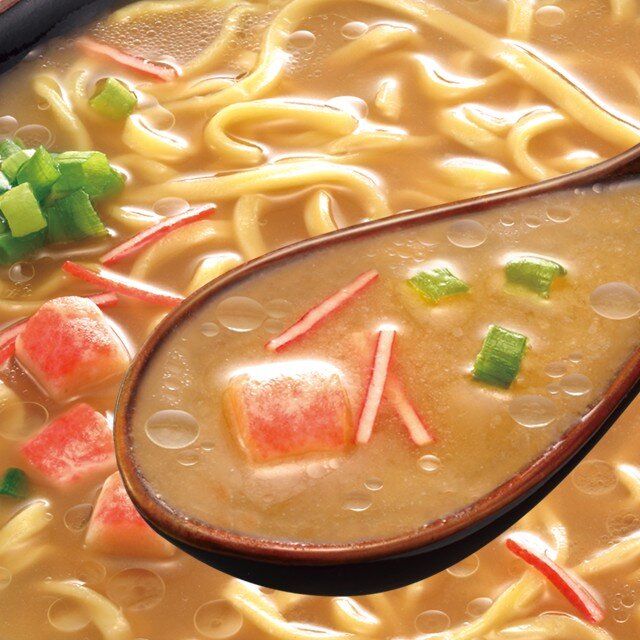 ポークをベースに蟹醤の旨みを加えた味噌ラーメンスープです。別添の液体スープを加えることでラードのコクが加わり、まろやかなスープに仕上げました。