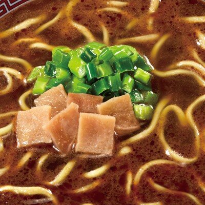 油揚げめん(小麦粉(国内製造)、植物油脂、食塩、しょうゆ)、スープ(しょうゆ、豚脂、食塩、たん白加水分解物、砂糖、香味油、ポークエキス、ポーク調味料、鶏油、魚介エキス、オニオンエキス、コンブエキス、ガーリックエキス、カツオ調味料)、かやく(焼豚、ねぎ)/加工でん粉、調味料(アミノ酸等)、炭酸Ca、カラメル色素、酒精、香料、かんすい、カロチノイド色素、酸化防止剤(ビタミンE)、フラボノイド色素、増粘多糖類、ビタミンB2、ビタミンB1、(一部に小麦・卵・乳成分・さば・大豆・鶏肉・豚肉・ゼラチンを含む)