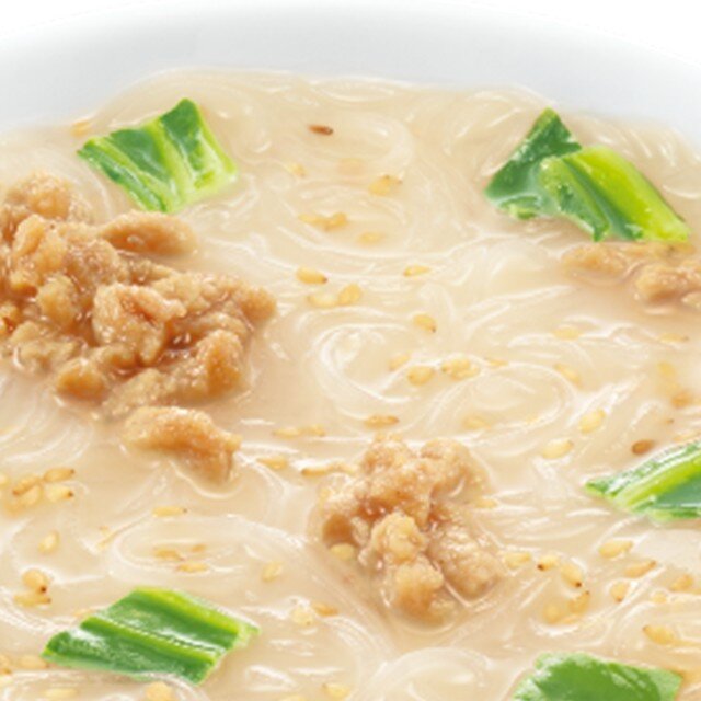 春雨(でん粉、醸造酢)(中国製造)、イヌリン、ごま、食塩、乳化油脂、大豆加工品、調整豆乳パウダー、乾燥チンゲン菜、チキン調味料、ポーク調味料、豆乳パウダー、魚介調味料、酵母エキス、乳等を主要原料とする食品、シイタケパウダー/調味料(アミノ酸等)、香料、カラメル色素、微粒二酸化ケイ素、甘味料(スクラロース、アセスルファムK)、(一部に小麦・乳成分・ごま・さば・大豆・鶏肉・豚肉を含む)