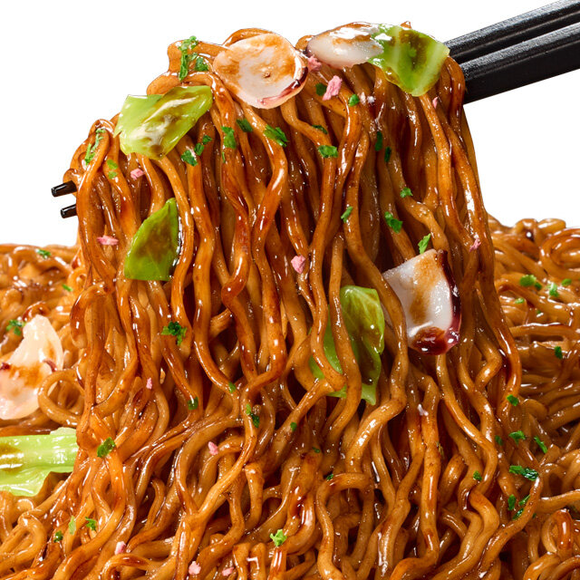 複数種のソースを配合することで、酸味や甘み、旨みをしっかりと感じることのできる焼そばソースです。ガーリックといかの旨みをしっかりと利かせた「めちゃうま!ふりかけ」を加えることで、最後まで食べ飽きない一杯に仕上げました。